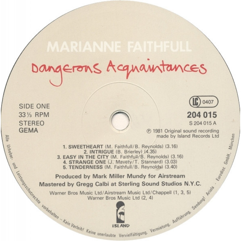 Marianne Faithfull – Dangerous Acquaintances [ LP, Album ] 1981 Germany