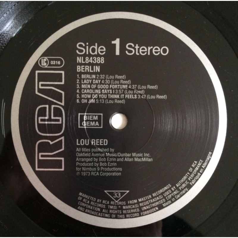 Lou Reed – Berlin [ LP, Album ] 1985 Europe