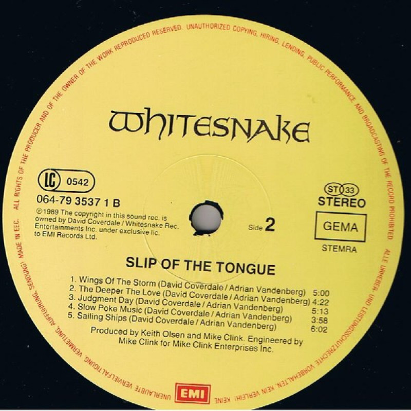Whitesnake – Slip Of The Tongue [ LP, Album ] 1989 Europe