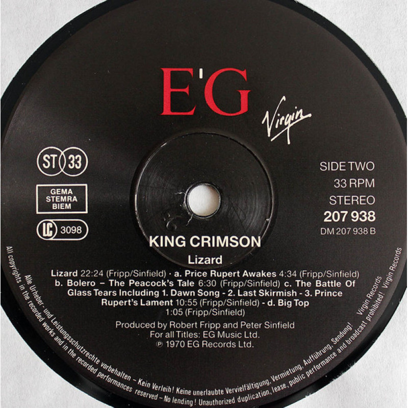 King Crimson – Lizard (LP, Album) 1987 Europe