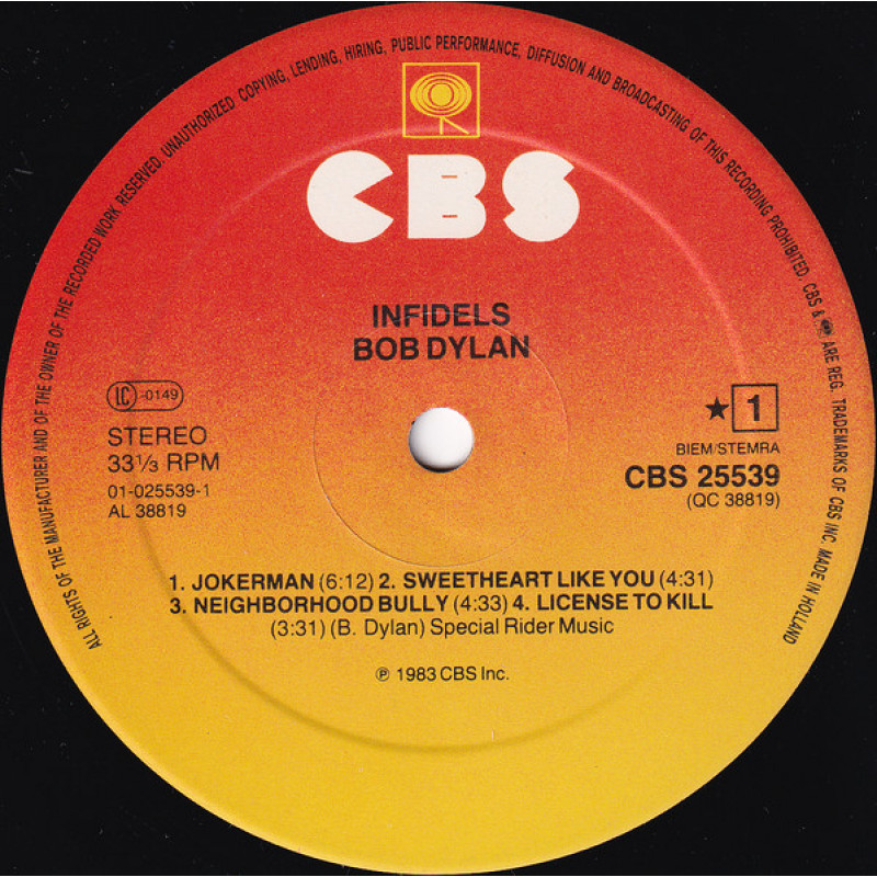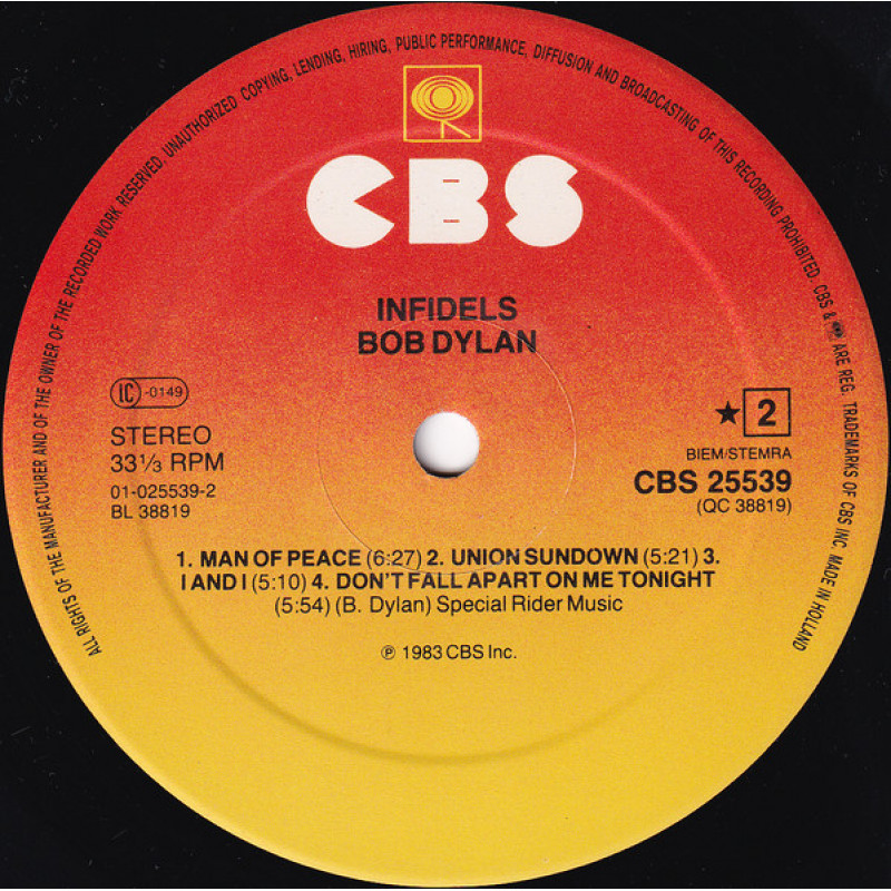 Bob Dylan – Infidels [ LP, Album ] 1983 Europe
