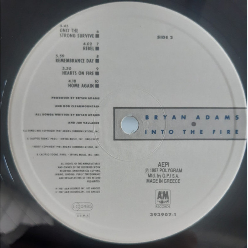 Bryan Adams – Into The Fire [ LP, Album ] 1987 Greece