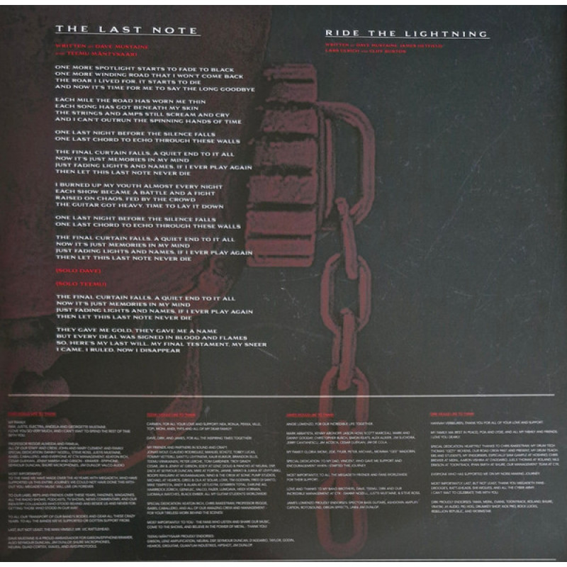 Kurucu şarkı yazarı/gitarist/vokalist Dave Mustaine'e göre, kendini adamış, yetenekli bir müzisyen olarak geçirdiği uzun kariyerine son verme zamanı geldi. Kanserle mücadeleyi kazanarak ve ciddi bir el yaralanmasından sonra el becerisini geri kazanarak tüm zorlukları aştı. Dave Mustaine, kariyerinin zirvesindeyken bırakmayı tercih etti, ancak Metallica'dan ayrıldıktan sonra kariyerinin en iyi kararını vererek Megadeth'i kurduğunda, bunu bırakmak olarak nitelendirmek zor. Kariyerini bitirmek için, onun köklerine dönmekten daha iyi bir yer olabilir mi? Frontiers Label Group tarafından yeni kurulan BlkIIBlk Records tarafından 23 Ocak 2026'da piyasaya sürülecek olan Megadeth'in yeni albümü, Metallica'nın “Ride The Lightning” şarkısının bonus parçasıyla sona eriyor.