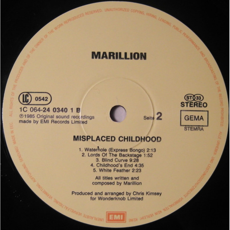 Etiketler: Marillion, Misplaced Childhood