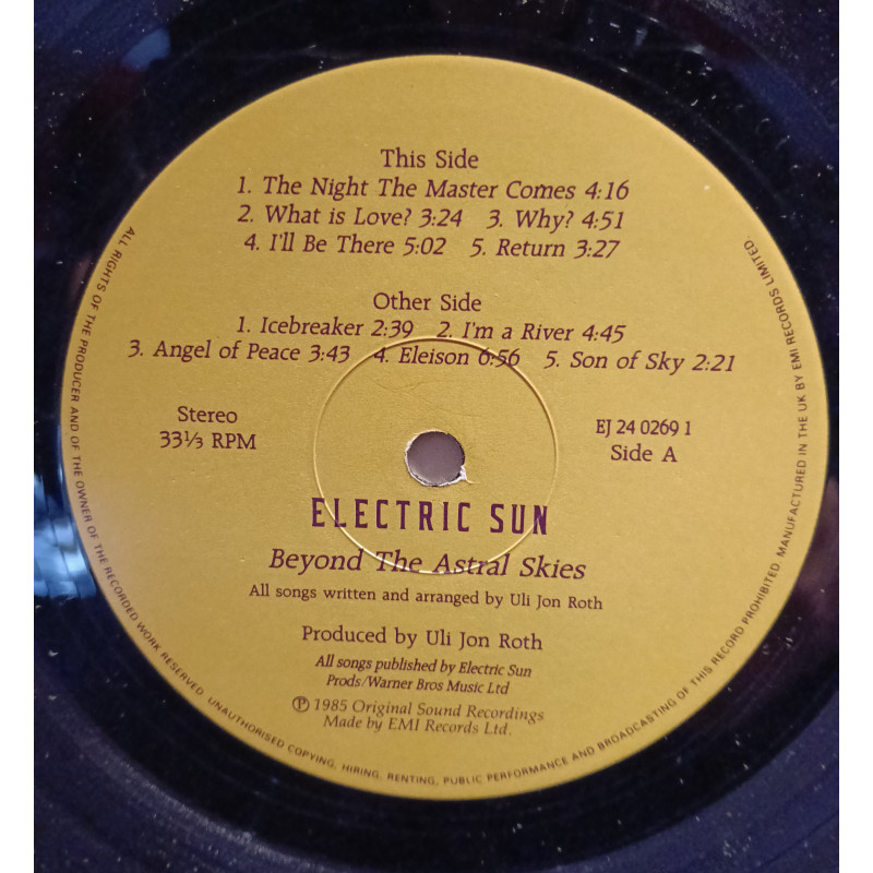 Etiketler: Electric Sun, Beyond The Astral Skies, (LP) 1985 UK