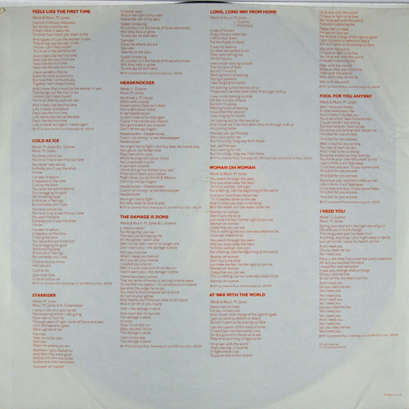 | A2 | Cold As Ice | 3:19 | |